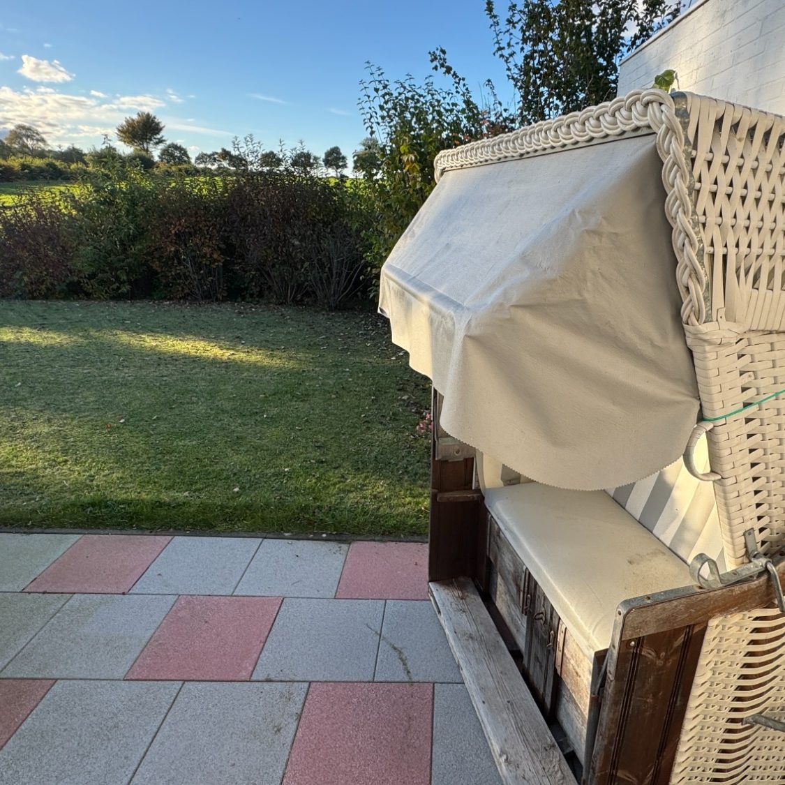 Es erwartet Sie auf Ihrer Gartenterasse ein Original Ostsee-Strandkorb. Unsere Strandkörbe haben bis zum Jahr 2025 noch am Dahmer Strand gestanden und sind damit echte Originale. Hier können Sie den schönsten Sonnenuntergang in ganz Dahme genießen.