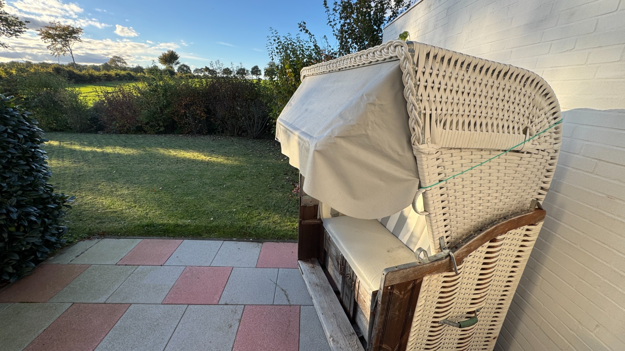 Die große Terrasse ermöglicht viel Lichteinfall und den direkten unverbauten Blick in die Natur. Hier können Sie die Nachmittagssonne in absoluter Ruhe geniessen. Die Straße gehört sicherlich zu den ruhigsten im Ort bei dennoch zentraler Lage mit kurzen Wegen.